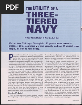 President Barack Obama’s strategy of January 2012 asked the Department of Defense to think differently, and to find ways to do more with less. The serial budget crises, the looming peace dividend, and the rising costs of shipbuilding all require us to reconsider every facet of how we do business. Secretary of the Navy Ray Mabus said recently to the assembled flag wardroom of the Navy: “We have to innovate, think, act, and deliver.” Indeed, we are collectively rethinking much about our surface Navy—the way we acquire and build ships, the way we make them ready, and the way we employ and sustain them. The following should add grist to that innovation mill.